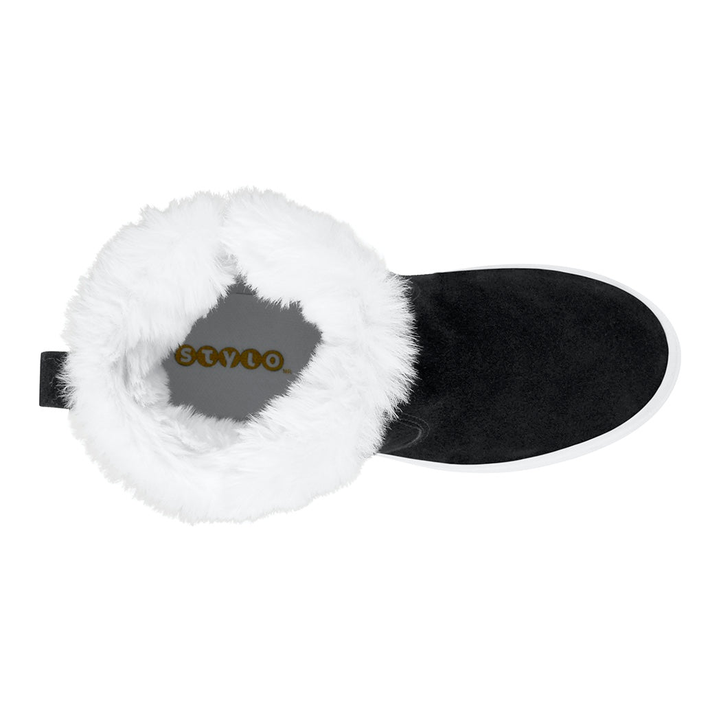 ¡Su Stylo único los hace los botines de invierno para dama más hot que puedas tener! Su textura en suede es suave, y resistente a la vez. Su forro interior te mantiene calientita. ¡Detalle en peluche!