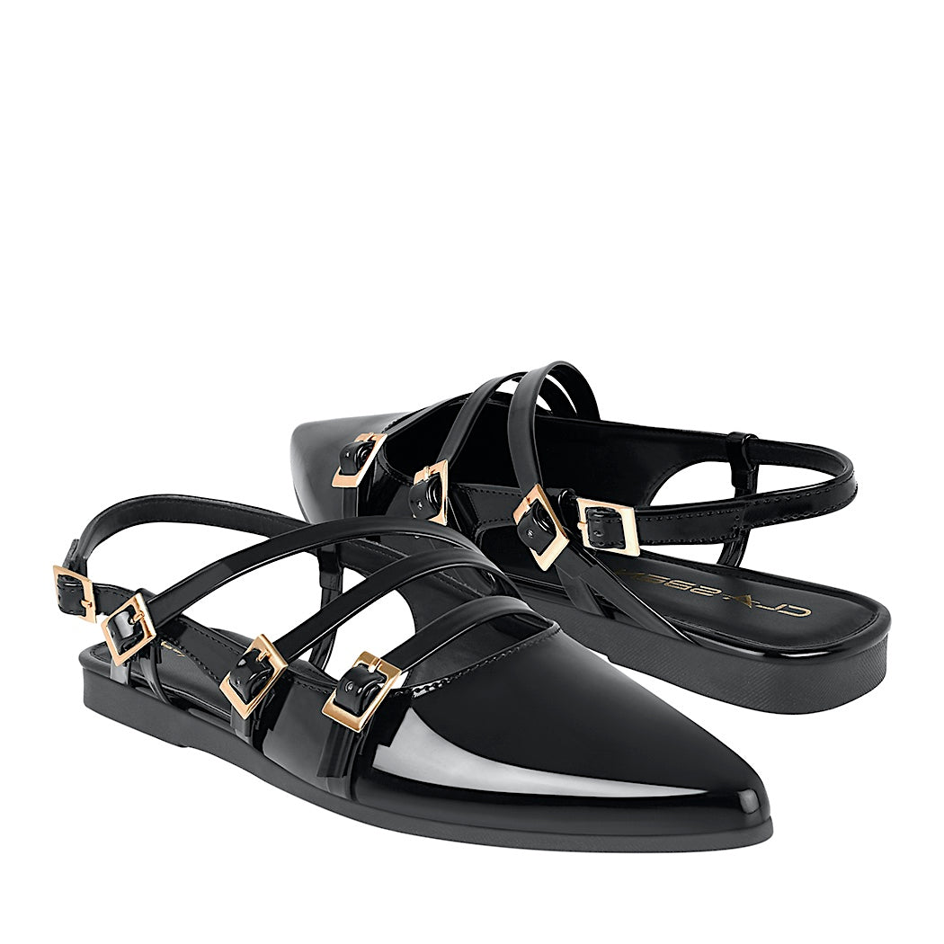 ¡Hermosamente retro! Estos zapatos casuales para dama son lo más hot que puedas lucir, pues le dan a tu outfit ese toque único gracias a su corte en charol y cinturones. Al ser de piso son deliciosos.